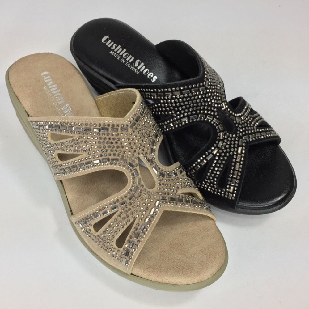 台灣製 水鑽玻璃拖鞋 22.5/23/23.5/24/24.5 後高6公分 超好穿 前高後高設計