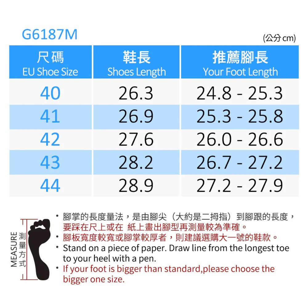 | 顏色 | 40 | 41 | 42 | 43 | 44 |