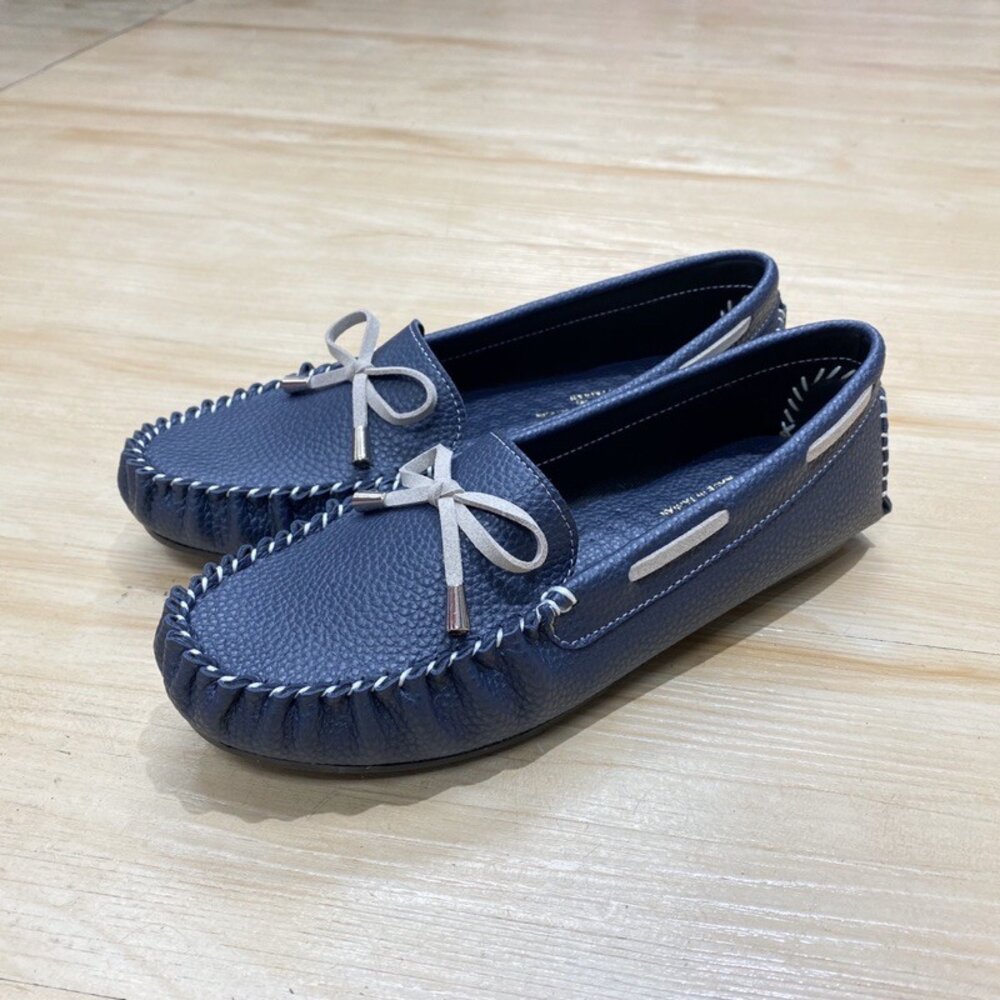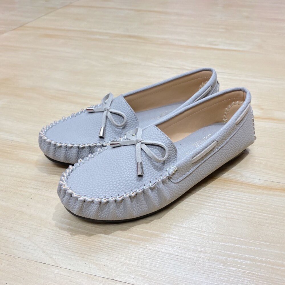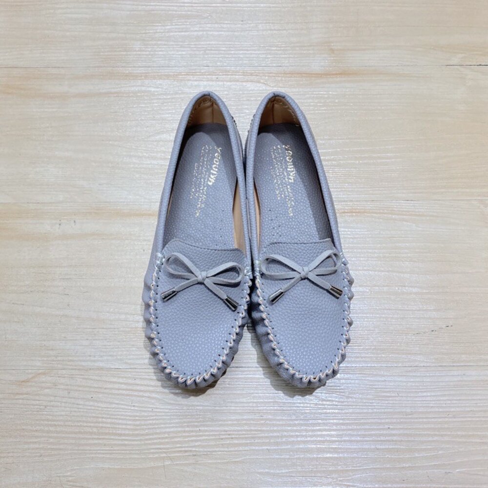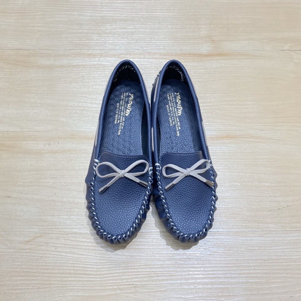 豆豆鞋 平底鞋 方頭 台灣製 丈青藍 大象灰